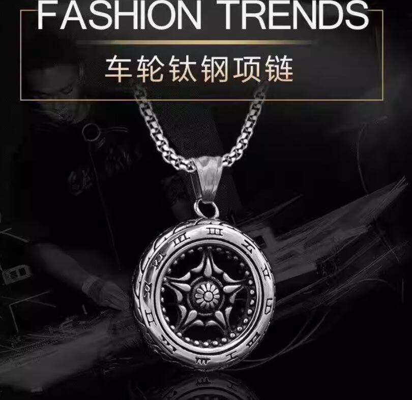 チタン鋼ホイールペンダントネックレス、パンクバイクスタイル、多用途、威圧的、ストリートトレンド、個性的、軽い贅沢