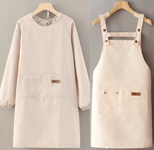 カスタムロゴプリントが施された無地のキャンバス長袖エプロン作業服。ケータリングやキッチンでの使用に最適901