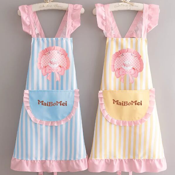 プリンセススタイルのベーキングエプロン/カバーアップ、キッチン調理用、耐油性、汚れ防止、耐久性、漫画風、甘くてかわいい作業服913