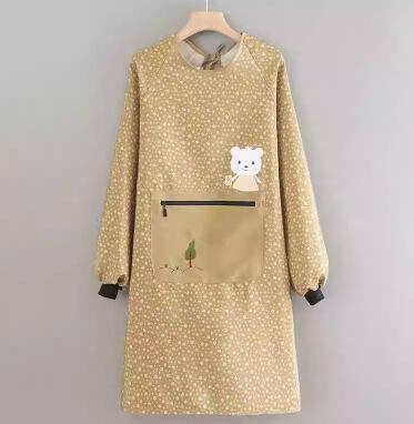 新しい長袖エプロン。家庭用、キッチン調理用、女性用カバーアップ、かわいいキャンバス作業服、甘い韓国風ウエストバンド917