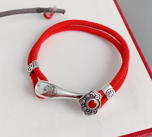 縁起の良い繁栄の赤いロープブレスレット、レトロスタイル、カップルブレスレット、手編みのハンドロープジュエリー946