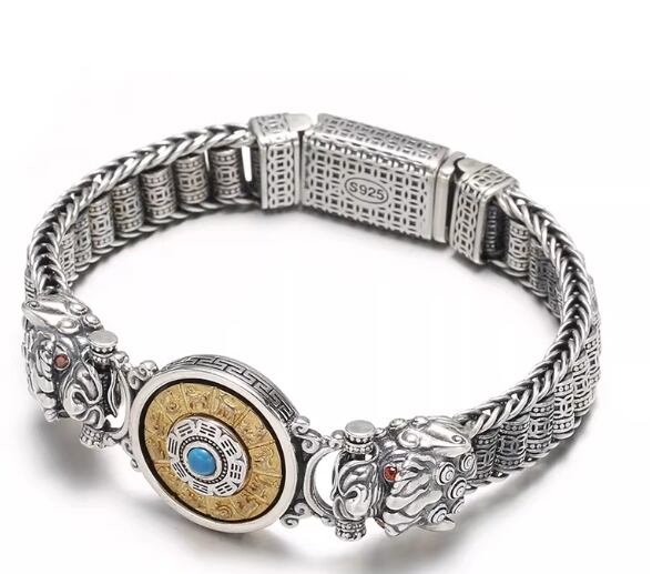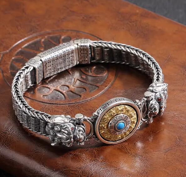 八卦六字真言をあしらった、新しいアンティーク調ブレスレット。トレンドセッターのためのレトロでファッショナブルなアクセサリー948