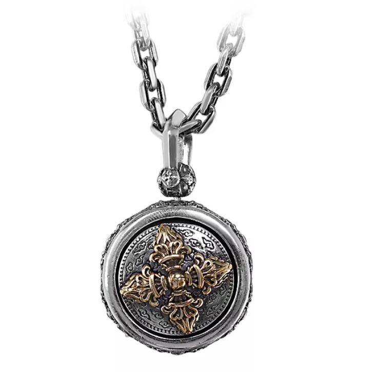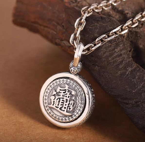 アンティーク仕上げの回転式ラウンドペンダント。ファッショナブルでレトロな、ユニセックスペンダント949
