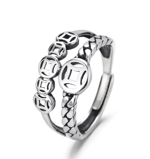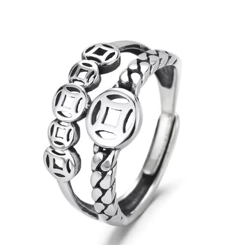 新しい二重層コインリング、トレンディ、レトロ、アンティーク調、幸運の銅コインオープンバンド959