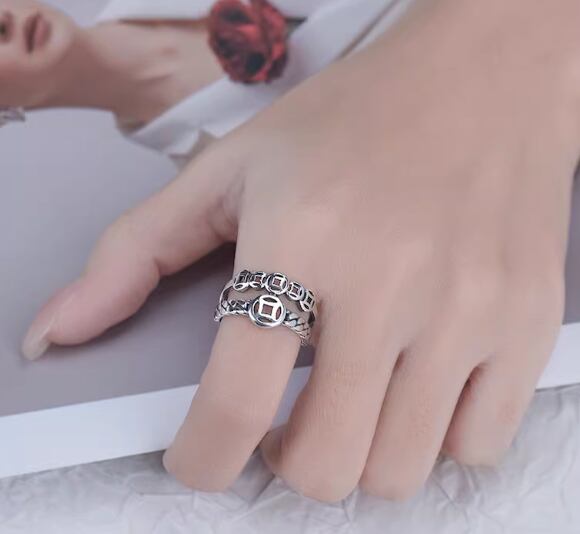 【特徴】 この「新しい二重層コインリング、トレンディ、レトロ、アンティーク調、幸運の銅コインオープンバンド959」は、あなたのファッションに特別な魅力をもたらすアイテムです!二重層のデザインが特徴的で、レトロでありながらもトレンディな印象を与え、あらゆるスタイルにマッチします。