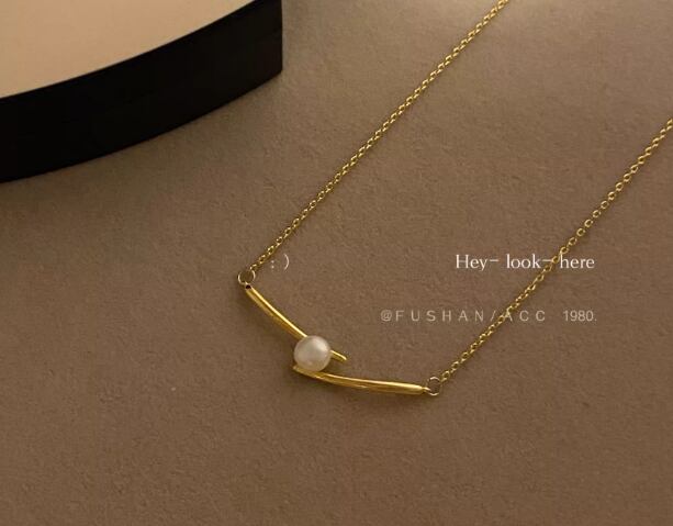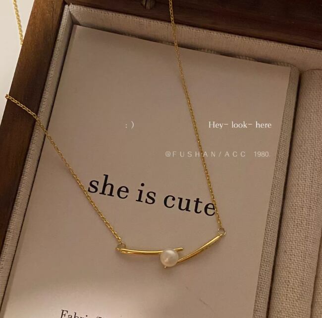 フレンチスタイルのヴィンテージ パールネックレス、14K ゴールド、ニッチ デザイン、鎖骨チェーン967