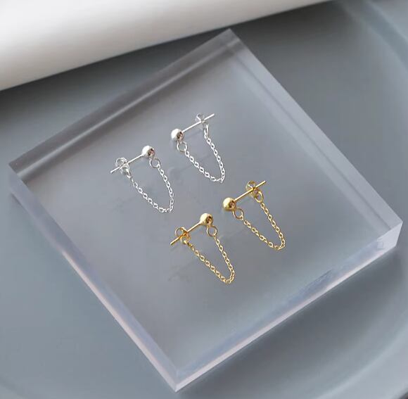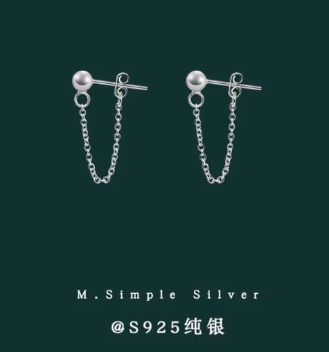 S925スターリングシルバーチェーンイヤリング:ハイエンド、シンプル、ユニーク、ショート、万能、ミニマリストスタイル988