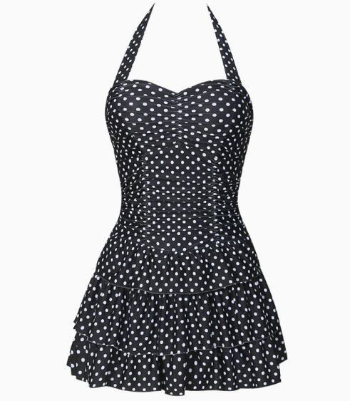2件セット水玉模様のワンピース水着+サマービーチハット、控えめでスリ-ム1029