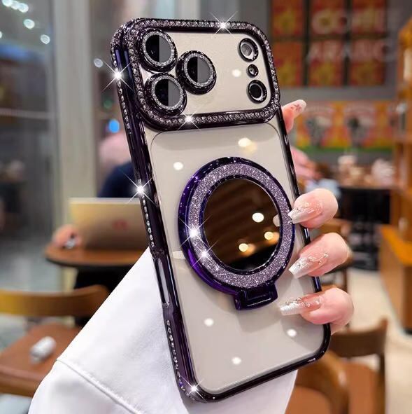 【カラー】ガーリーピンク、ダークパープル、シャンパンゴールド((メイクアップミラースタンド ☆レンズプロテクター付き ☆保護フィルム付属)