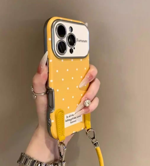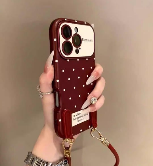 3件セットき韓国風ミニマルな水玉模様のリストバンド付きiPhone 16/15用スマホケース。Apple 14/13 Pro Maxに対応。レザーソフトケース1085