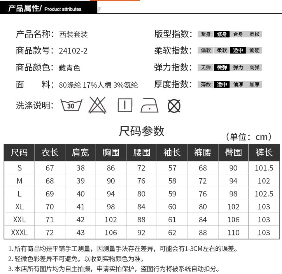 高品質な素材と身体にフィットするシルエットが、着心地とスタイルを両立!軽やかな着心地は、忙しい日常を快適に過ごすための理想的な選択です。また、フォーマルな場面にもカジュアルなシーンにも柔軟に対応できるため、さまざまなコーディネートを楽しむことができます。このスーツを手に入れることで、あなたのイメージアップが実現すること間違いなし!