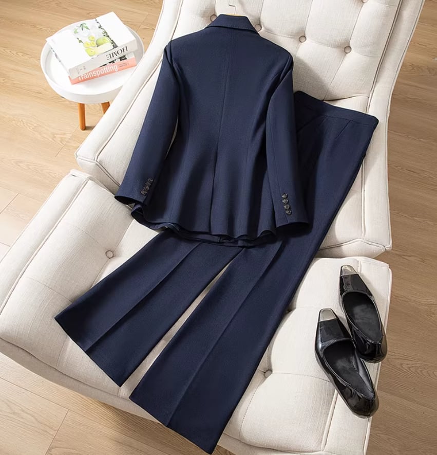 【カラー】【樹脂ボタン】ネイビーブルースーツ+フレアパンツセット