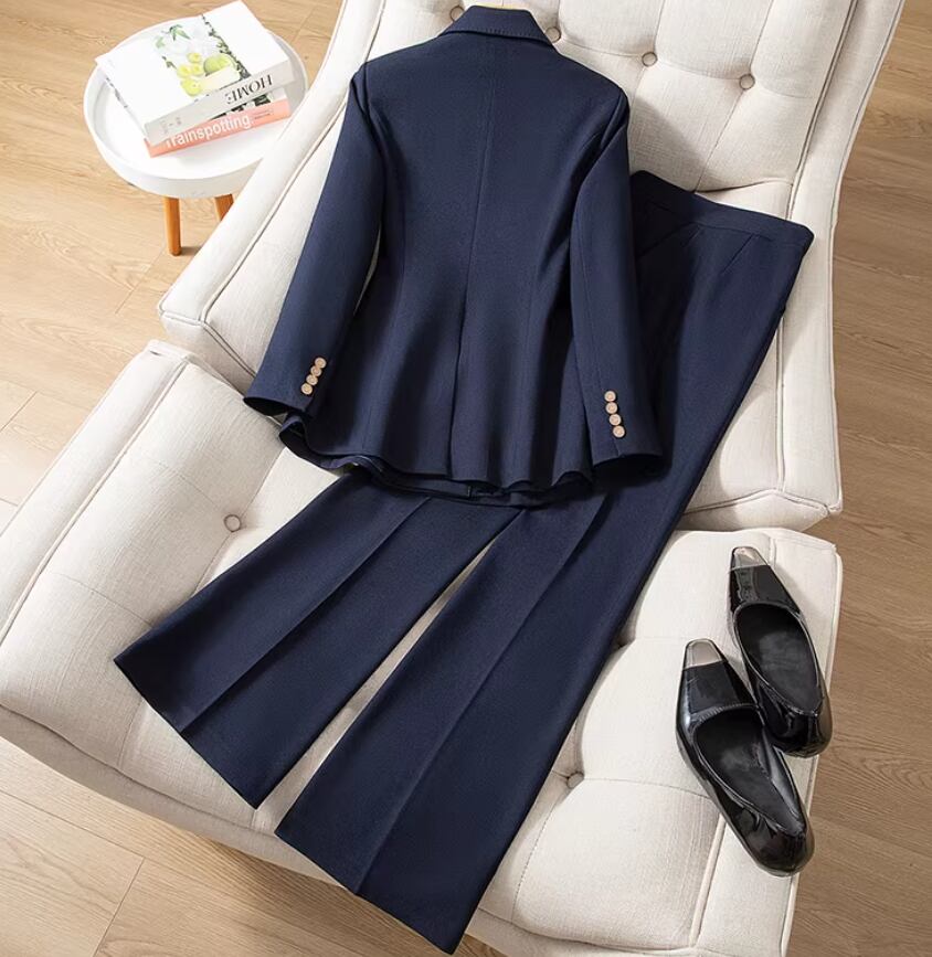 【カラー】【メタルバックル】ネイビーブルースーツ+フレアパンツセット