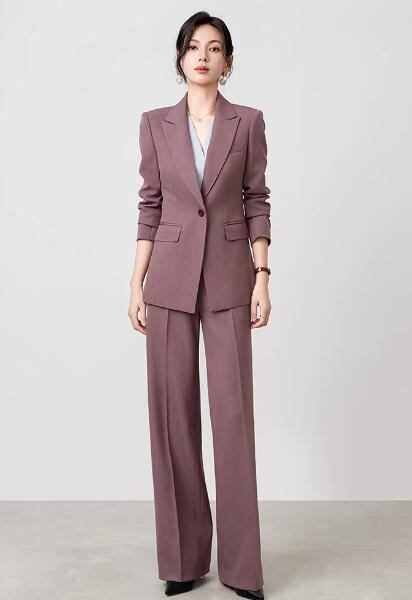 高級感のある温かみのあるパープルのプロフェッショナルなフォーマルスーツセット。女性向けで、スリムに見え、スタイリッシュなオフィスレディ1110