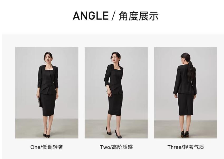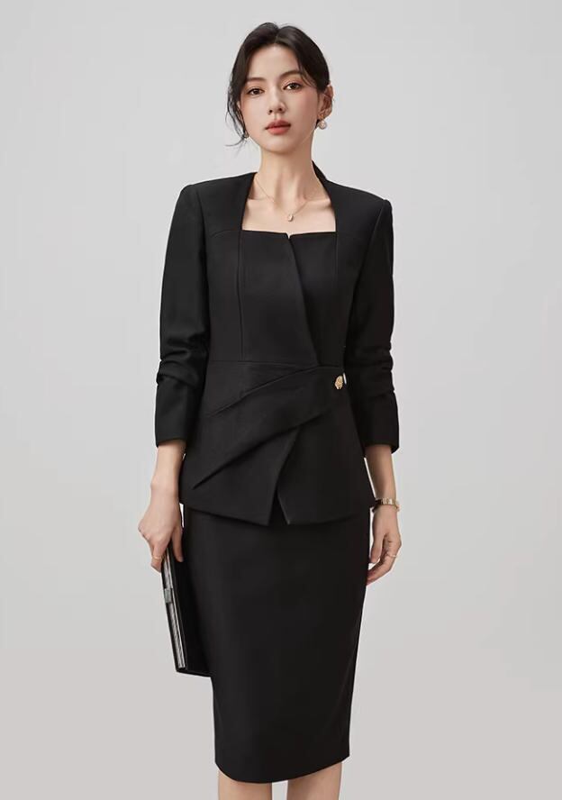 黒のスクエアネックのビジネススーツとスカートのセットスタイリッシュな女神のようなルックスで、宴会の主催に最適。スリムに見えるツーピース1117